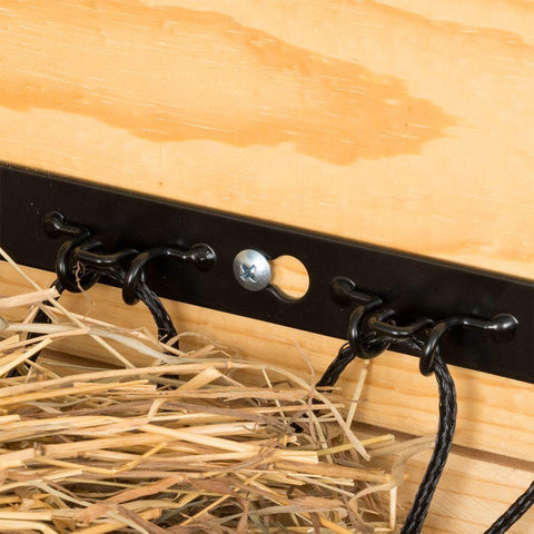 Stop wasting time stuffing hay nets and switch to this clever corner hay feeder from Tough1. The open top design allows you to easily load and refill hay without dealing with strings, snaps or straps. A 2"x2" hay net is included and secured onto spiral fittings, for simple replacement if needed. The unique folding frame keeps the corner open, allowing this feeder to be installed in corners with posts and also in corners that are not perfectly 90 degrees. Great for horses of all sizes when installed properly (see special instructions).