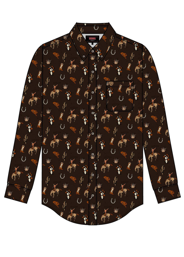 Rock & Roll Denim Mens Rodeo Print Long Sleeve