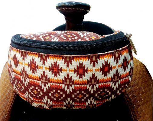 Insulated Nylon Saddle Pouch. Includes two convenient pockets that are ideal for your phone, keys, money, snacks, etc. Simply clip the saddle pouch to the pommel of your saddle with two buckles. Measures 8.5" long by 3.5" wide by 4.5" tall