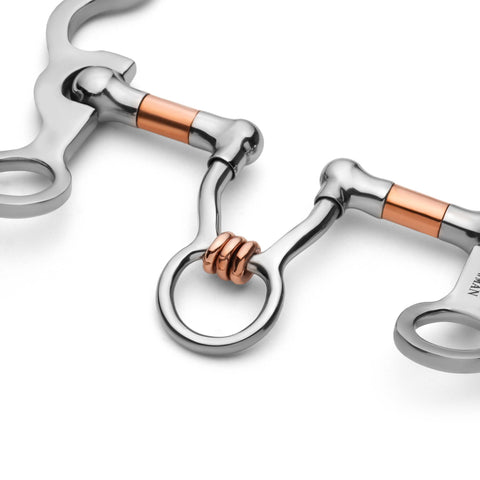 The mouth features copper-wrapped bars for warmth and acceptance, plus a ported correction center with copper rollers. The port provides tongue relief and precise vertical lift, while the rollers maintain moisture and a busy, responsive mouth. At 3 ¼" tall and 1" wide, it rides decisive in experienced hands and is ideal for tuned horses that need respect without dulling their feel.